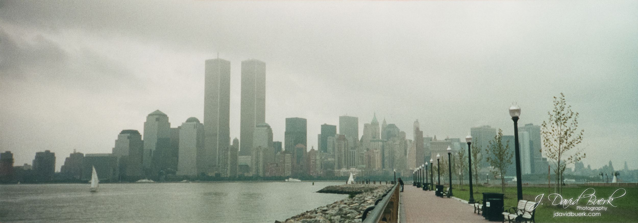 I pulled onto the brick road leading to Liberty State Park and knew I had succeeded in capturing something to match my film photo of the Twin Towers; remarkably, even the weather was visually similar to that day in 2000. I quickly parked, and in my excitement that I was going to actually be able to capture this photo, I had to slow myself down and think, plan - grab my camera, think about what settings I want to use, clean and dry my hands, grab the print of my 2000 photo and be sure to keep it secure, clean, and undamaged on the way to the spot, and think about how best to locate the exact spot.